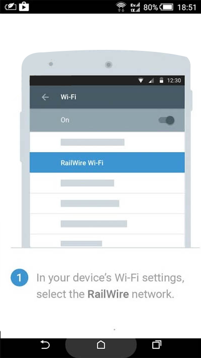 - When you are nearby to Google Free Wi-Fi railway station, open Wi-Fi setting option on your mobile device, you will notice a hotspot named as “RailWire Wi-Fi”. Select this.